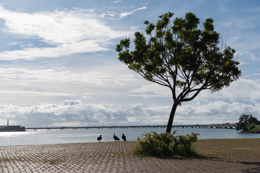 Um 5:45 morgens bin ich vor die Tür und hatte erst einmal ein mulmiges Gefühl, da es doch noch recht dunkel war. Es gab auch zunächst nichts, was meinen Blick auf sich zog. Doch dann fand ich zwischen Straße und Strand diesen faszinierenden Baum, der von der Laterne in ein unwirkliches Licht getaucht wurde.