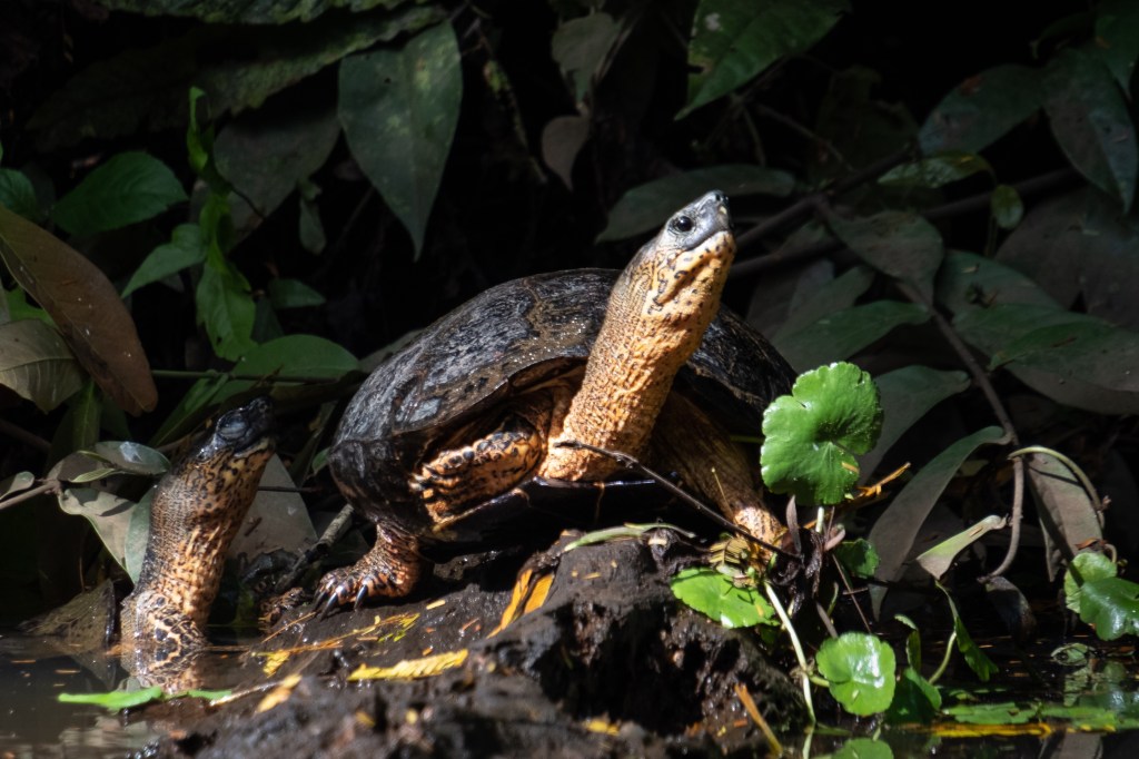 Schon die Anreise zum Nationalpark Tortuguero ist besonders. Die letzte Strecke wird mit dem Boot zurückgelegt, d.h. man erreicht ein autofreies Paradies. „Tortuga“ heißt Schildkröte, d.h. man könnte „Tortuguero“ frei als Ort mit vielen Schildkröten übersetzen. Und die kommen tatsächlich mehrmals im Jahr an die Ufer des Nationalparks an der Karibikküste, schleppen sich mühsam ein paar Meter den Strand herauf, buddeln ein Loch und legen dann 100 Eier und mehr hinein, schließen das Loch und kehren ins Meer zurück. All das passiert nachts und darf nicht fotografiert werden, ist aber dennoch ein faszinierendes Erlebnis. Ebenso faszinierend ist es, im Boot durch die vielen Kanäle des Parque Nacional Tortuguero zu paddeln.